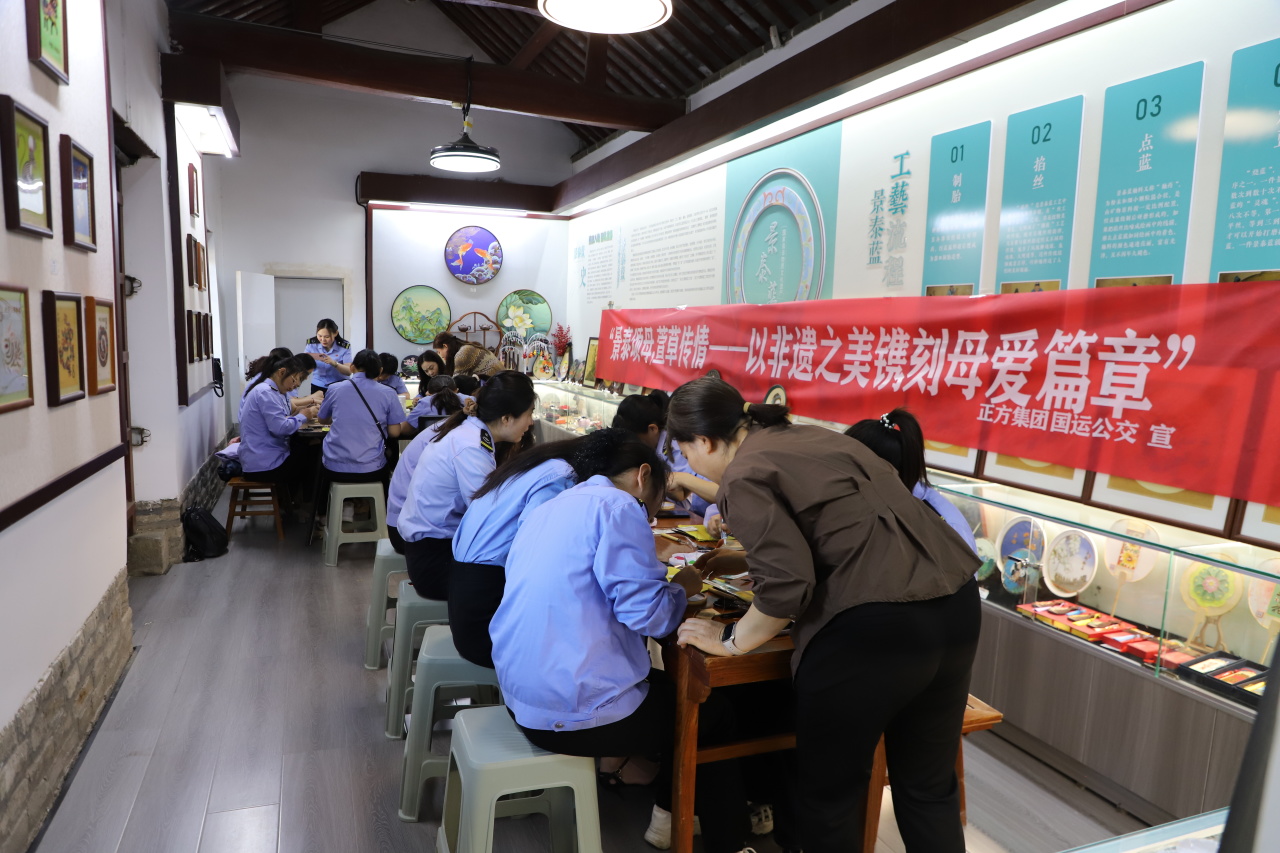 “平时开车总想着怎么把乘客安全送达,今天静下心做手工,感觉特别治愈。”一位公交女司机笑着说。大家围坐在一起,交流着制作心得,在一掐一填间,原本素白的画板渐渐被斑斓色彩填满,一朵朵象征爱与祝福的花朵、一幅幅饱含深情的图案跃然眼前。这些亲手制作的景泰蓝作品,既是送给自己的节日礼物,也将成为传递给母亲的暖心惊喜。